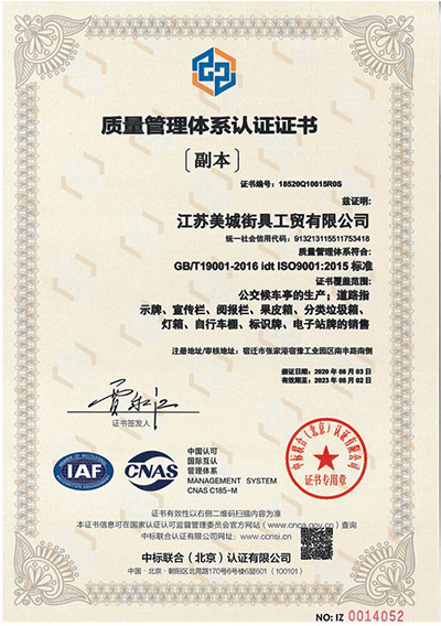 企業(yè)誠(chéng)信管理體系認(rèn)證證書